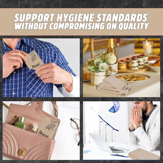 Breeze® Pocket Dry Tissue Soft Paper 100 Plain Sheets (Pack Of 10, Size 200 x 200 mm)